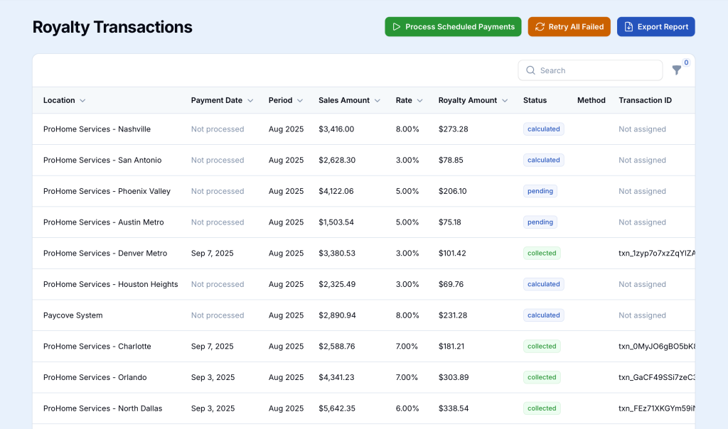 Whether you’re scaling franchises, managing multiple locations, or rolling up acquisitions—Paycove handles your unique revenue complexity.